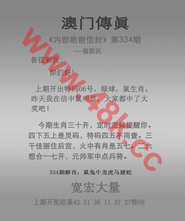 | 334期: ⑥肖 | 虎猪龙猴牛兔 | 猴46中 |